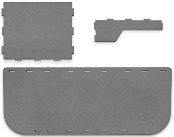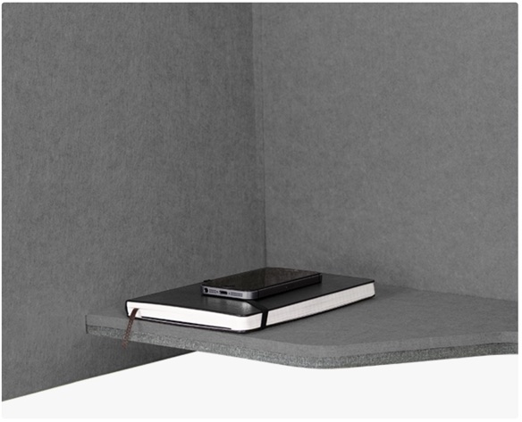 Polyesterová akustická PE-vláknitá deska, ze které se skládá telefonní budka, je vyrobena z recyklovaných materiálů. Kromě vynikajících vlastností pohlcování zvuku má také požární odolnost B. Panely jsou nařezány tak, aby do sebe zapadly systémem „zacvaknutí do drážky“ pro snadnou montáž.