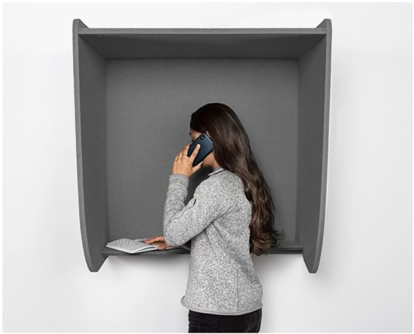 Akustická nástěnná telefonní budka poskytuje rychlé soukromí a ticho i v hlučném kancelářském prostředí. Prostorná a obklopující bude izolovat uživatele ze tří stran, čímž tlumí zvuk a poskytuje odlehlejší pracovní prostor.