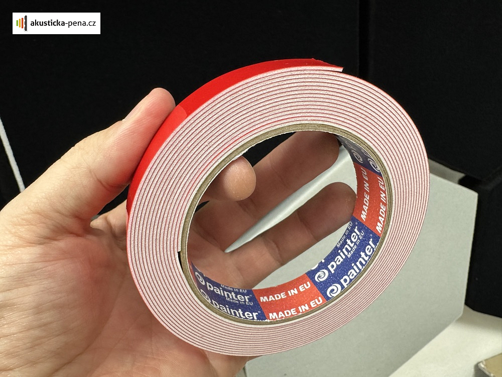 - Pásku lze použít pro lepení malých dílků akustické pěny (hexagony, malé obklady apod.)